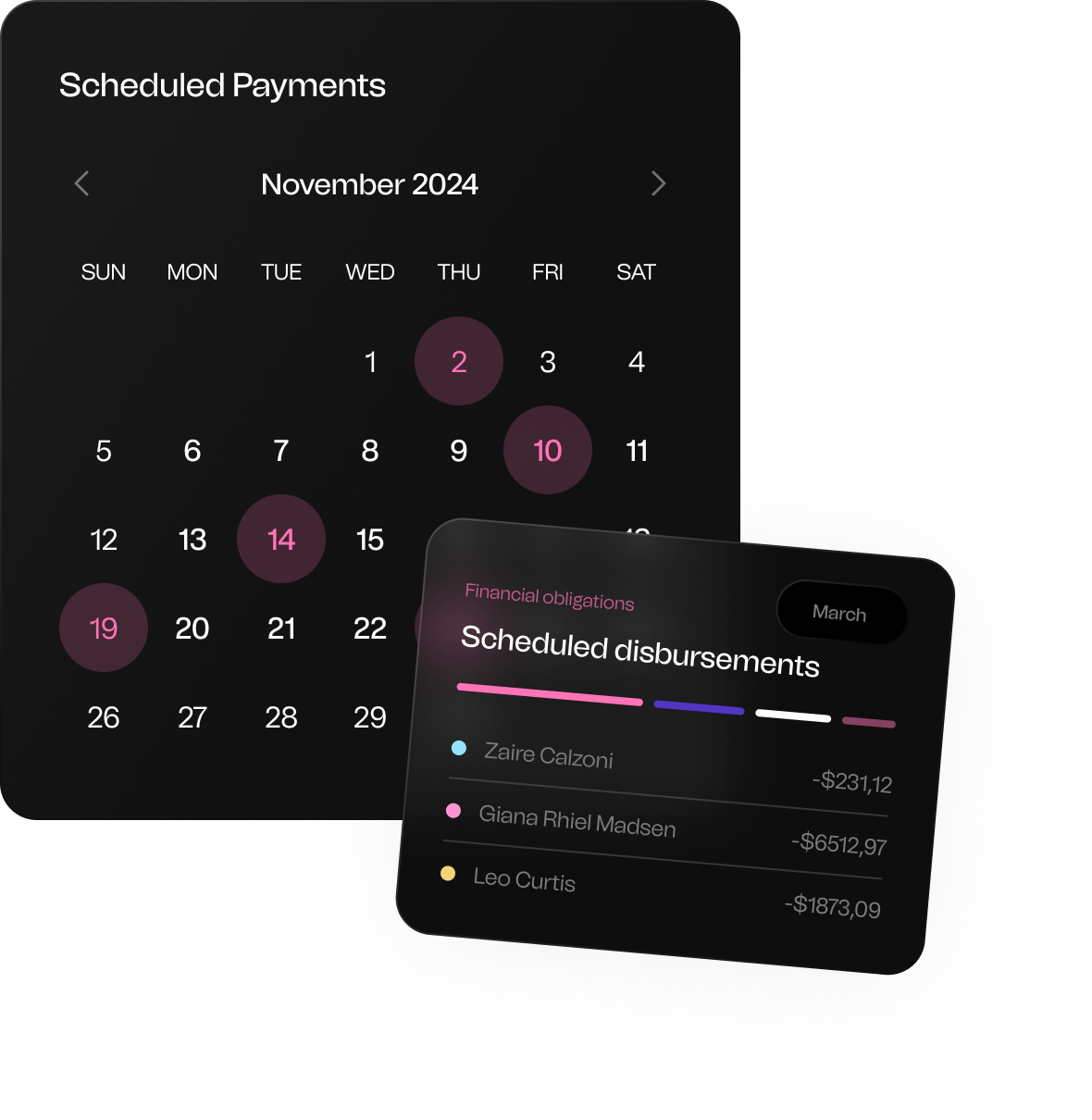 Automate your recurring financial obligations with scheduled disbursements, ensuring timely and consistent payment execution without manual intervention.